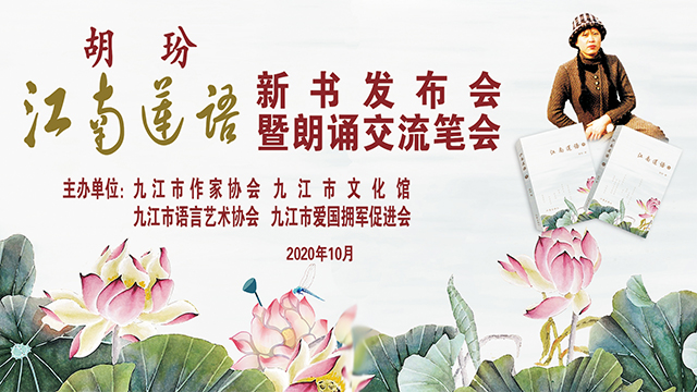 10月10日上午10點(diǎn),由九江市作家協(xié)會(huì)、九江市文化館、九江市語(yǔ)言藝術(shù)協(xié)會(huì)、九江市愛(ài)國(guó)擁軍促進(jìn)會(huì)聯(lián)合主辦的胡玢《江南蓮語(yǔ)》新書發(fā)布會(huì)暨朗誦交流筆會(huì)在濂溪區(qū)美術(shù)館舉行。該書由中國(guó)作家出版社出版,人民日?qǐng)?bào)社高級(jí)編審、中國(guó)散文學(xué)會(huì)名譽(yù)會(huì)長(zhǎng)、中國(guó)詩(shī)歌學(xué)會(huì)理事、著名詩(shī)人、散文家、國(guó)家特殊貢獻(xiàn)專家石英老師作序。